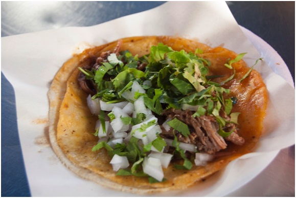 The Birria de Res (beef) taco from Tacos Rodriguez street cart in Tijuana