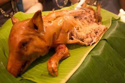 Pepita’s Kitchen presents its roasted suckling pig on a bed of banana leaves./ourawesomeplanet.com